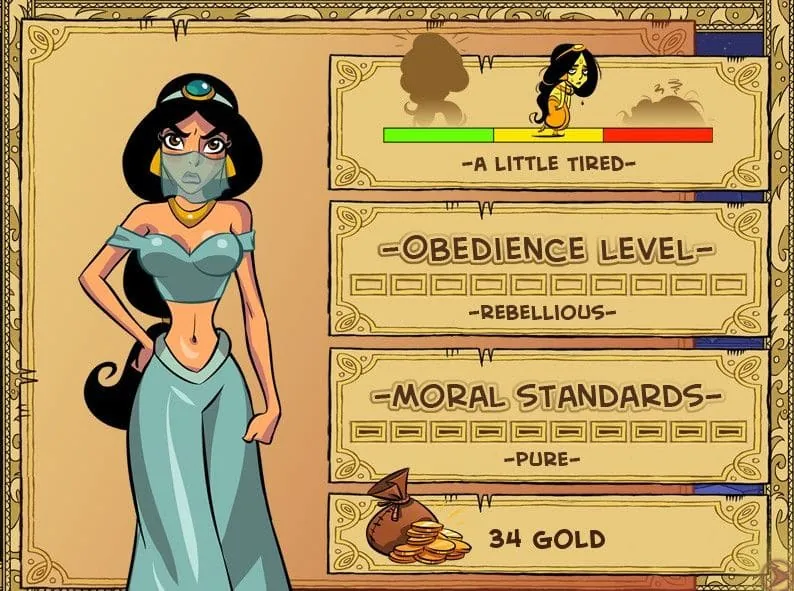 At its heart, Princess Trainer Gold Edition is a brilliant fusion of resource management, stat-building, and narrative choice, all wrapped in a familiar yet twisted Disney-esque package. 🏰 What truly sets it apart is how these systems feed into each other. Your success in the story is directly tied to your skill in managing Jasmine’s daily life, her development points, and your wallet.